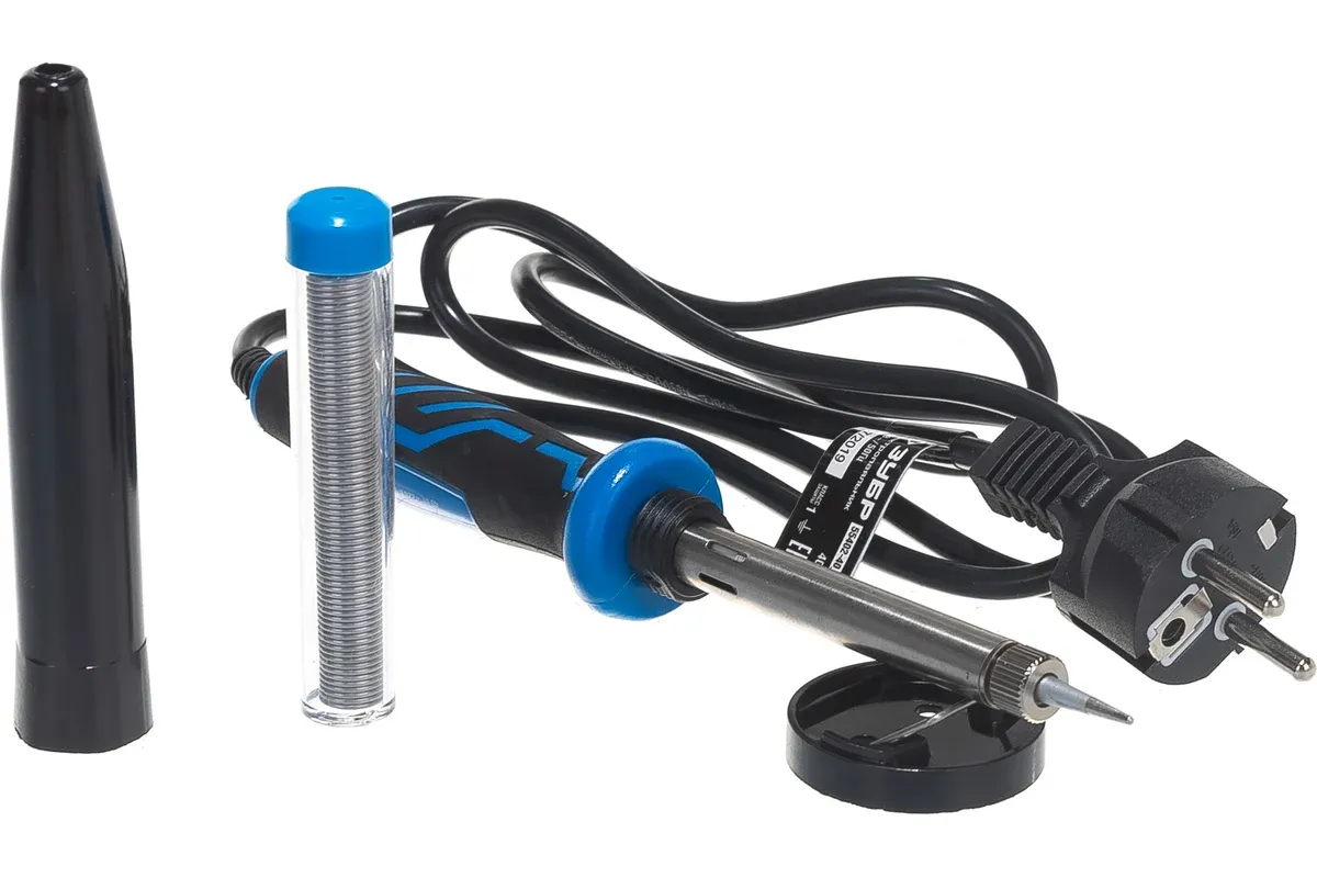 40 Вт, в наборе: припой + подставка, 2к рукоятка, конус, керамический нагреватель, электропаяльник, Профессионал (55402-40)