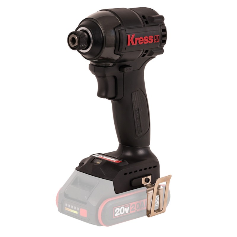 Бесщеточный двигатель Высокий крутящий момент 4 скоростных режима Компактные размеры и малый вес Импульсный режим вращения Патрон HEX 1/4 Универсальная аккумуляторная система Kress 20V Клипса для крепления на поясе Яркая светодиодная подсветка |