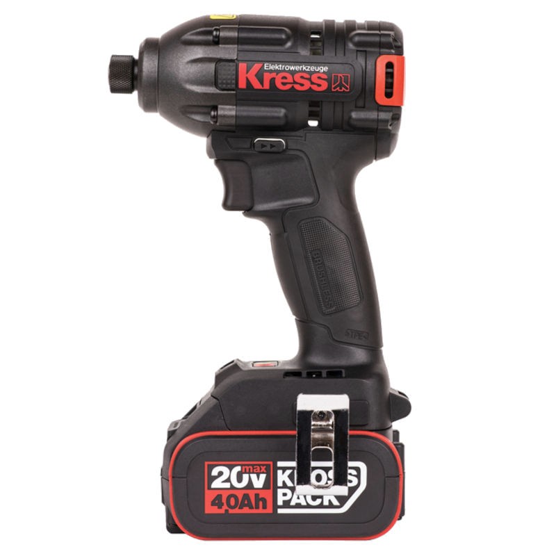 Бесщеточный двигатель Высокий крутящий момент 3 скоростных режима Компактные размеры и малый вес Импульсный режим вращения Патрон HEX 1/4 Универсальная аккумуляторная система Kress 20V Клипса для крепления на поясе Яркая светодиодная подсветка |