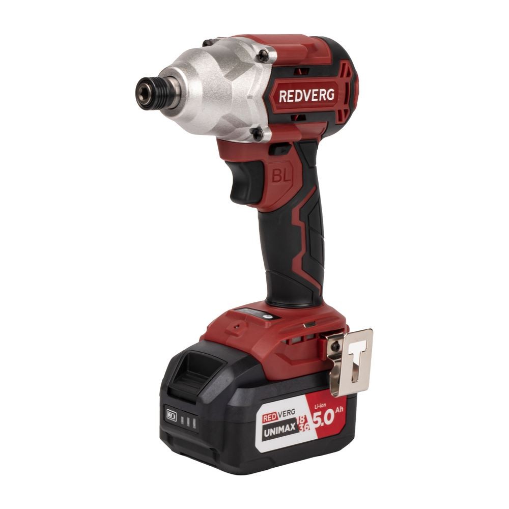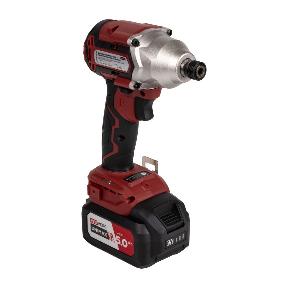 Бесщеточный двигатель Единая аккумуляторная система REDVERG UNIMAX 18/36 1 аккумулятор по 5Ач в комплекте Патрон Hex _ Высокий крутящий момент Реверс Электронная регулировка скорости вращения двигателя Наличие удара Клипса Наличие подсветки |