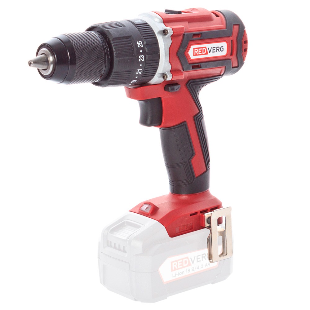 Аккумуляторная дрель-шуруповерт REDVERG RD-IS18BLC/U ударная (без акк, без з/у) для безударного сверления металла, древесины, пластмассы и подобных материалов, вворачивания/выкручивания шурупов и нарезания резьбы, а также для ударного сверления каменной кладки, кирпича и камня. 25+1+1 положение регулировки крутящего момента для точной настройки. Специальная металлическая скоба-подвес, с размещением с двух сторон корпуса для вывешивания на ремень при выполнении различных работ в том числе и на высоте.