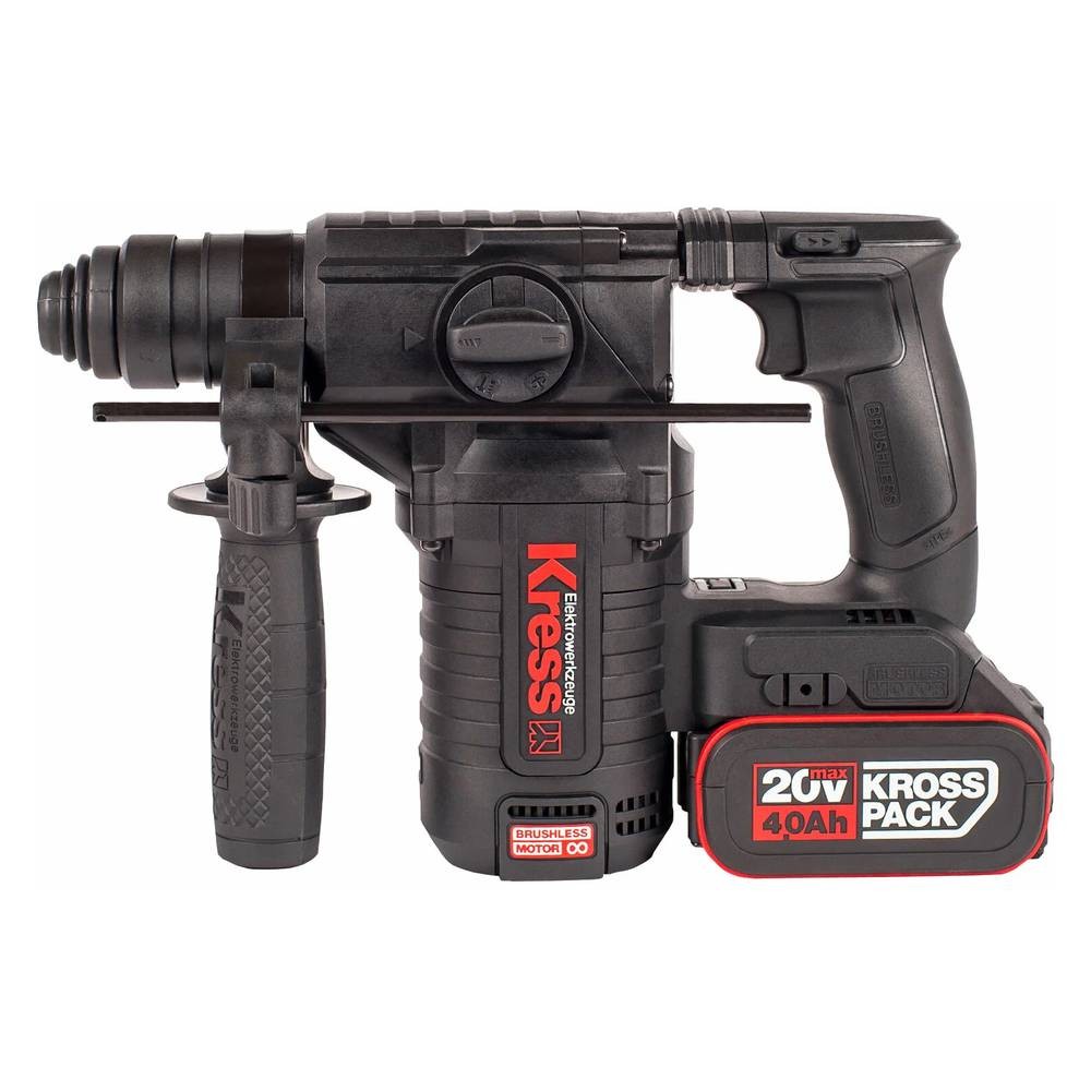 Единая аккумуляторная система KRESS KROSS PACK 20V 2 аккумулятора по 4Ач в комплекте Бесщеточный двигатель Сила удара 2Дж Патрон SDS Plus с пылезащитой Система Vario-Lock Предохранительная муфта Антивибрационная система Три режима работы Реверс |