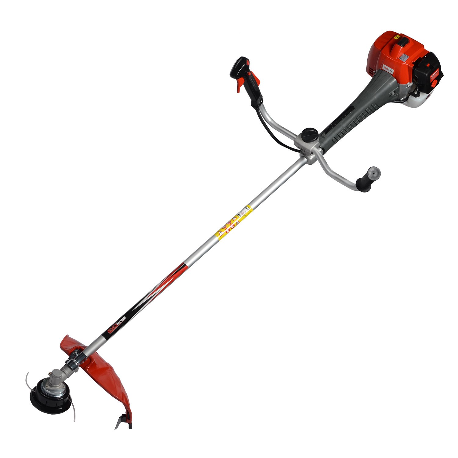 _ 3 сменных насадки входят в комплект (стальной диск с 80-ю зубьями толщиной 2 мм, триммерная головка с леской диаметром 2,5 мм и 3-х лопастной металлический нож толщиной 2 мм);