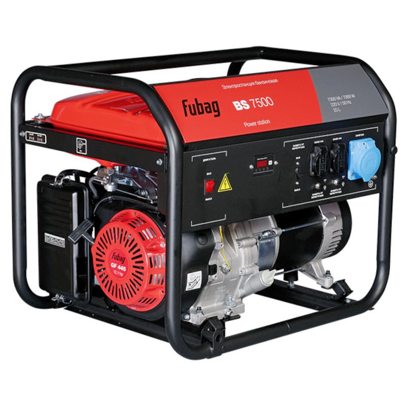 <div class="catalog-product-attributes__white-gradient"></div> <div class="product-page__description-paragraph"> <p> <b>Бензиновый генератор FUBAG BS 7500</b> подойдет для подключения большого количества потребителей или работы с высоконагруженным оборудованием. Ресурс работы станции обеспечат OHV-двигатель FUBAG с верхним расположением клапанов. Синхронный альтернатор с медными обмотками ротора и статора оснащен системой регулировки выходного напряжения (AVR). Двигатель и альтернатор установлены на раму через демпферы позволяющие значительно гасить вибрации во время работы и перемещения генератора. Сварной топливный бак объемом 25л оснащен указателем уровня топлива и фильтром-сеткой. Панель управления станции оснащена тремя пыле/влагозащищенными розетками: 2х220В/16А и 1х220В/32А для подключения мощных потребителей. На розетки установлена индивидуальная защита от короткого замыкания и перегрузки. Цифровой дисплей позволит контролировать выходное напряжение и частоту, отслеживать межсервисные интервалы и |