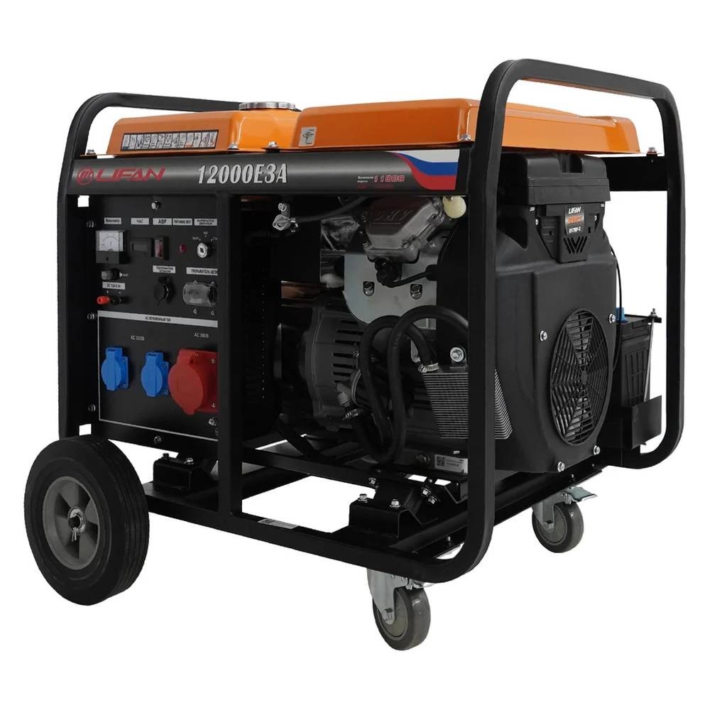<div class="catalog-product-attributes__white-gradient"></div> <p class="product-page__description-paragraph"> Бензиновый генератор LIFAN 12000E3A - мощный трехфазный бензиновый генератор, применяемый в качестве источника электроэнергии на дорожных и строительных работах, промышленных объектах, на личных загородных участках, в автомастерских, магазинах и в других подобных областях. Исключительная надежность, устойчивость к поломкам и высочайшая производительность делают данную модель одной из лучших на рынке в своем классе электрогенераторов. Генератор обладает высокой мощностью в 12/10.5кВт, временем непрерывной работы около 4 часов, имеет выходное напряжение 220В и 380В. Оснащен электрическим стартером, вольтметром, индикатором уровня топлива, системой контроля уровня масла и автоматического отключения в случае снижения его уровня, а также системой защиты от перегрузок (AVR). Медная обмотка позволяет повысить КПД, уменьшить расход топлива, нагрев и износ агрегата, тем самым увеличивая срок его службы. Бл |