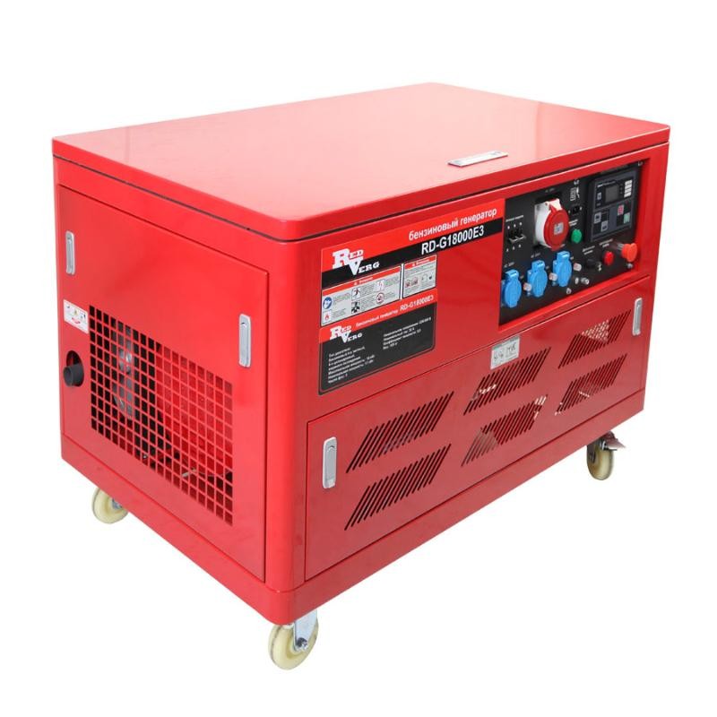 <div class="catalog-product-attributes__white-gradient"></div> Бензогенератор REDVERG RD-G16000E3 имеет довольно внушительную мощность в 16 кВа. Аналогов ему на рынке довольно мало, обычно производители бензогенераторов ограничиваются мощностью в 5-6 кВт, а более мощные модели производят уже с дизельным двигателем. Однако есть потребители, которым необходима именно мощная бензиновая электростанция. Такая большая мощность, естественно, предполагает уже не воздушное, а жидкостное охлаждение. Также модель оснащена кожухом, оберегающим станцию от пыли, а людей - от шума, производимого им. Приемущества: Лёгкий доступ ко всем узлам: Обеспечивается за счёт быстро фиксирующих замков на защитных съёмных панелях. Для доступа необходимо нажать и повернуть фиксирующий замок как описано на специальном стикере. . Полноценный автомобильный двигатель водяного охлаждения обладает высоким ресурсом при длительной эксплуатации. Эффективная подача топлива: Новой конструкции топливный кран, Топливный фильтр и электрически |