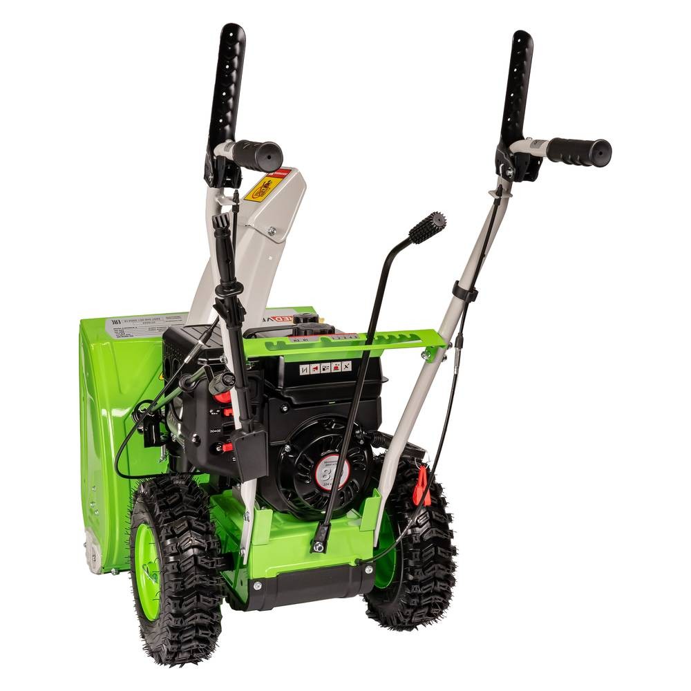 Бензиновый снегоуборщик REDVERG RD-SB56/8R предназначен для использования на частных территориях небольшой площади – дачных участках, загородных владениях. Оснащен современным 4-х тактным бензиновым двигателем RATO мощностью 8л.с., адапрированным к работе зимой. Трансмиссия с 7 скоростями – 5 вперед и 2 назад позволяет настроить оборудование для уборки снега разной плотности и легко проходить сложные участки. Благодаря металлическим зубчатым шнекам размером и крыльчатке, снегоуборщик справляется со слежавшимися сугробами и настом. Механизм разблокировки обоих колес обеспечивает плавность манёвра при повороте в процессе работы.