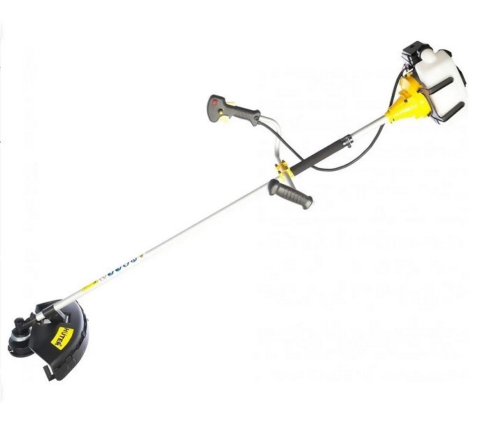 - Бензиновый триммер Huter обладает полной автономностью, можно работать где угодно без связи с источниками энергии.