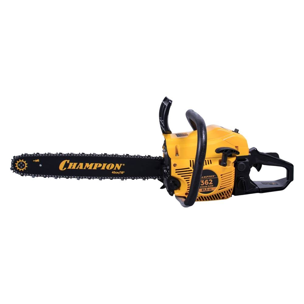 Бензопила Champion 362-18 это профессиональная пила, которая предназначена для использования в домашнем и лесном хозяйстве. Применяется для распиливания заготовок из древесины, раскряжевки и валки деревьев, спиливания ветвей. За обеспечение безопасности отвечают уловитель и тормоз цепи, снижающие вероятность травмы оператора при отскоке инструмента или обрыве цепи. При выполнении натяжения цепи исключен контакт с острой цепью пилы. Функция легкого запуска обеспечивает быстрый и легкий старт данной модели.