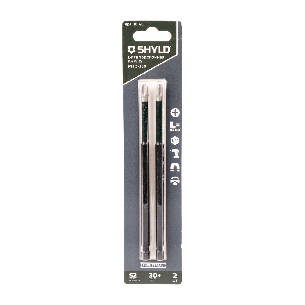 Бита SHYLD PH3x150мм ударная 2шт (10140) - биты тип PHILIPS крестового профиля хорошо передают крутящий момент, что исключает повреждение винта или заготовки. Изготовлены из легированной инструментальной стали S2. Бита обладает магнитными свойствами, что позволяет удерживать саморез или шуруп в любом удобном положении.