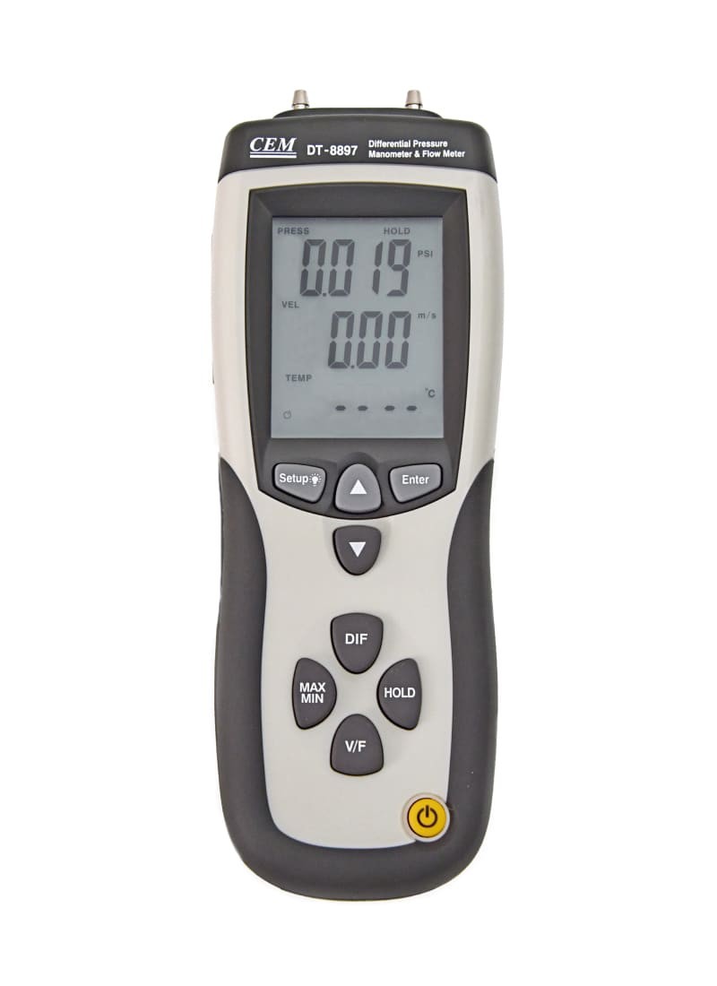 DT-8897 – дифференциальный манометр, совмещенный с анемометром и расходомером.