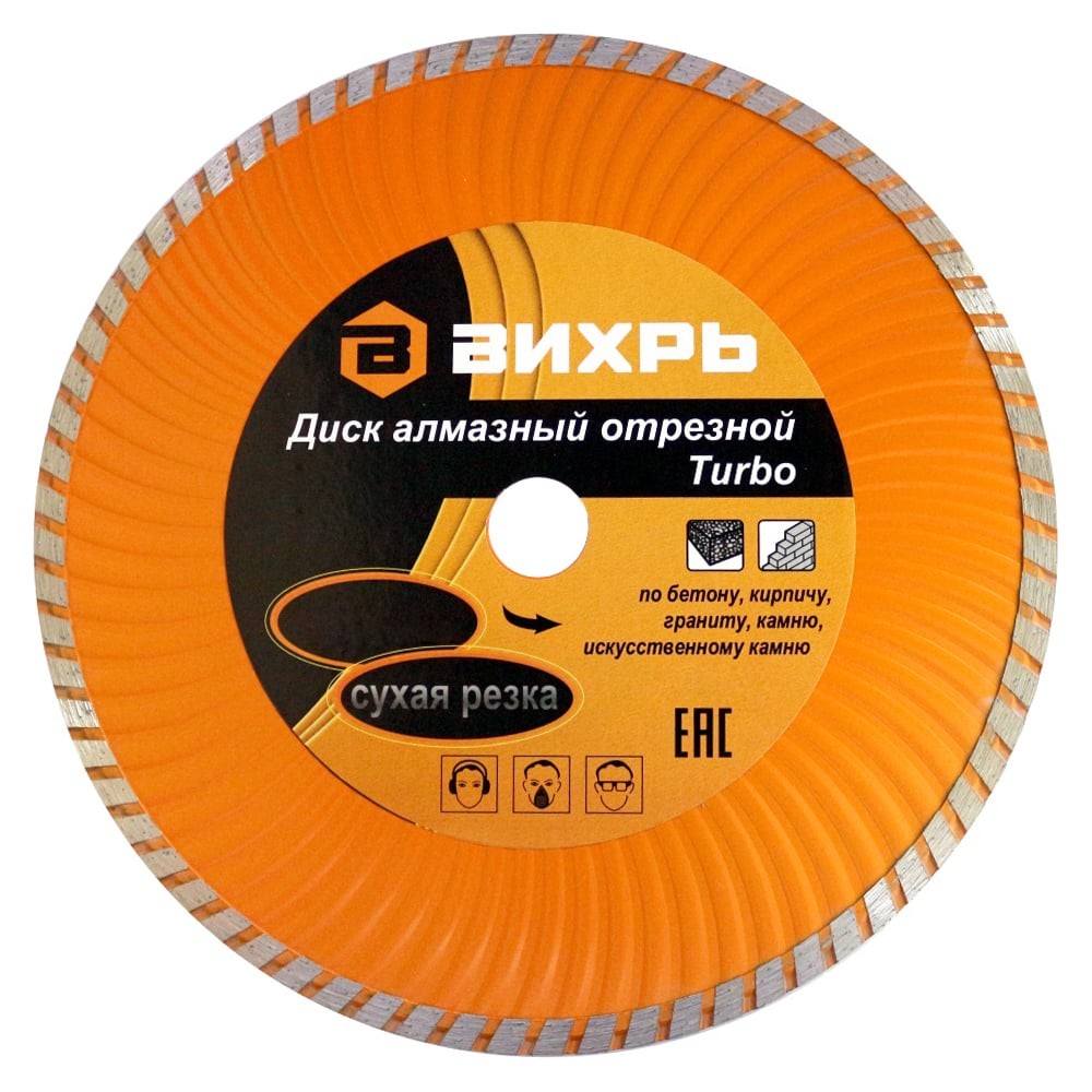 Диск алмазный отрезной Турбо 125 х 22,2 мм, сухая резка Вихрь