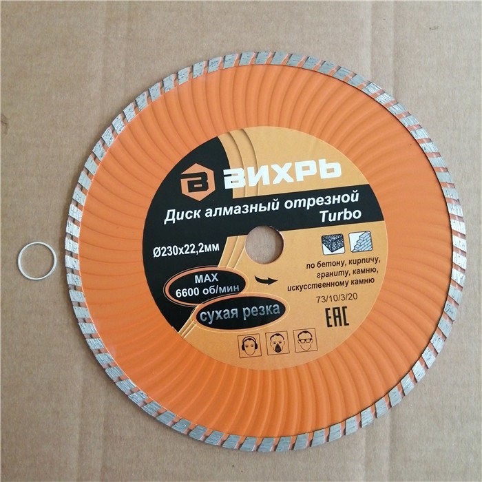 Диск алмазный отрезной Турбо 230 х 22,2 мм, сухая резка Вихрь
