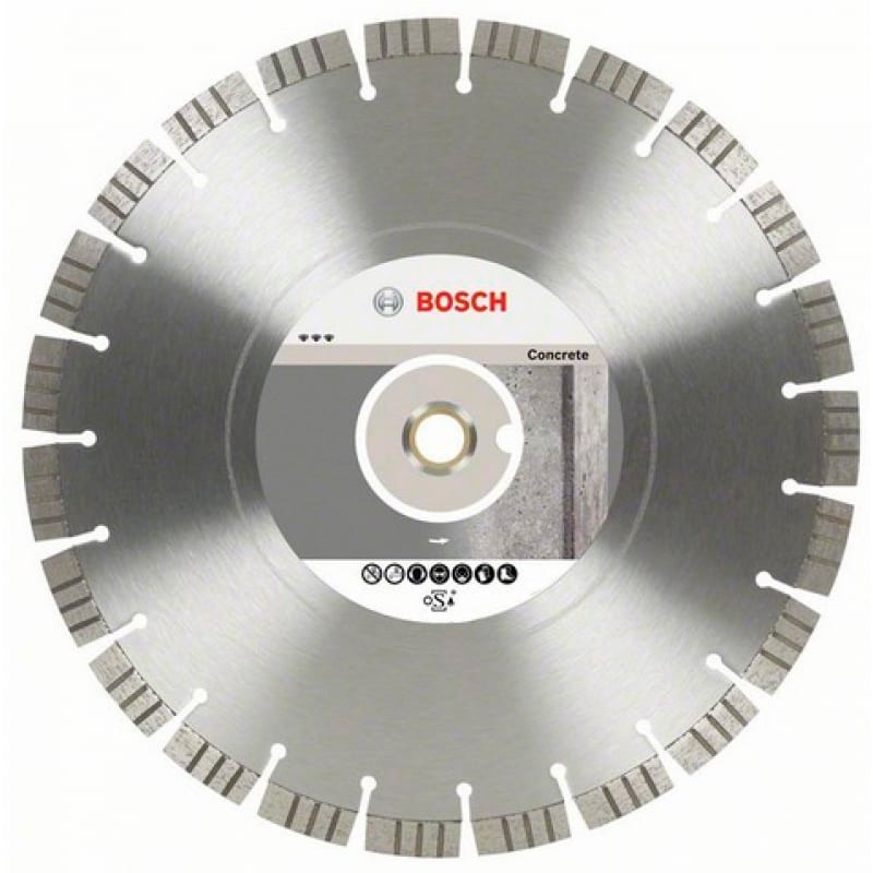 <div class="catalog-product-attributes__white-gradient"></div> Диск алмазный по бетону Bosch Bf Concrete 350х25.4мм (658) применяется для резки отвердевшего бетона с армированием и без армирования. Высота сегментов до 15мм. С переходным кольцом 20мм. |