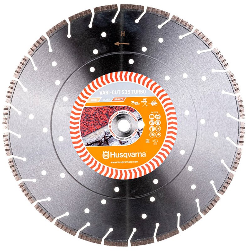 <div class="catalog-product-attributes__white-gradient"></div> Диск алмазный по бетону и кирпичу Husqvarna VARI-CUT S35 400x25.4мм (5879059-01) специально разработан для гранита, мрамора, природного камня, затвердевшего бетона средней жесткости, а также армированного бетона и кирпича. |