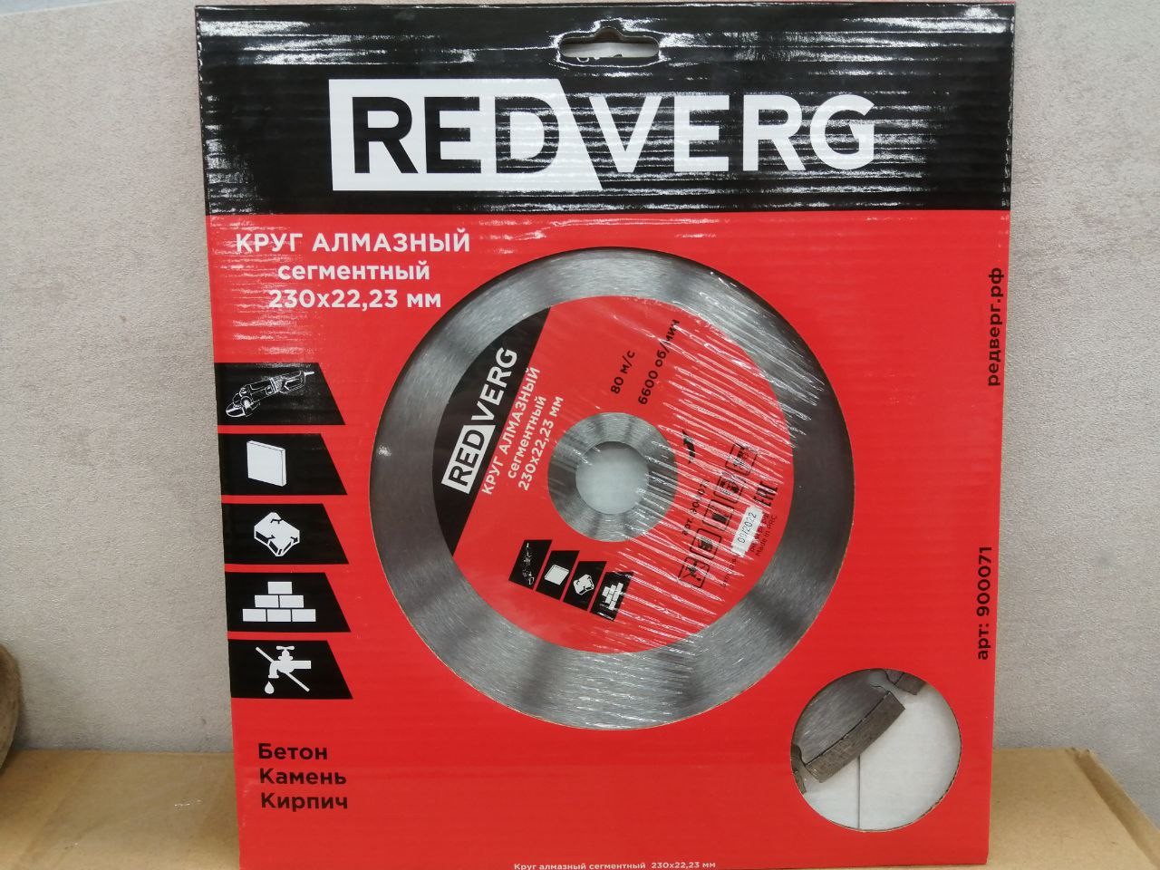 Диск алмазный по бетону и кирпичу REDVERG 230х22.2мм (900071)