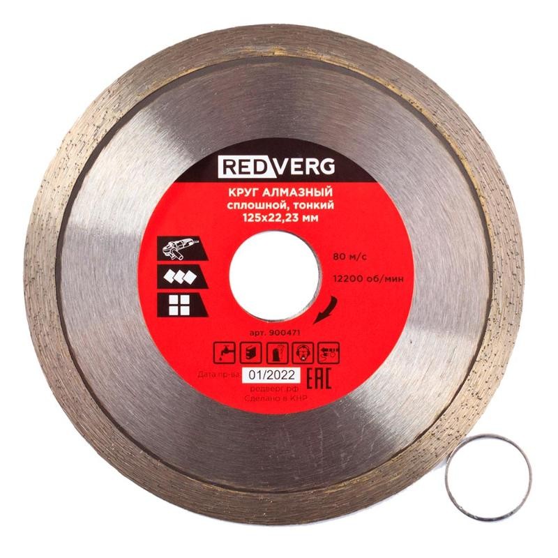 Диск алмазный по керамограниту и керамике REDVERG 125х22.2мм (900471)
