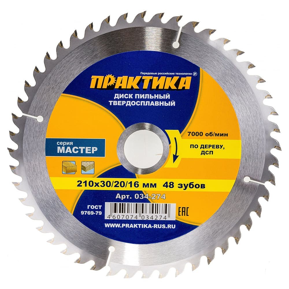 Диск пильный по дереву Практика 210х30/20/16мм 48T (034-274)