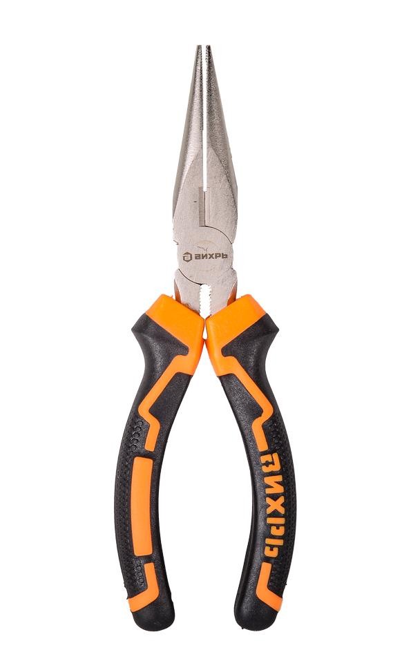 Длинногубцы прямые Вихрь, 160 мм, никелированные, двухкомпонентные рукоятки