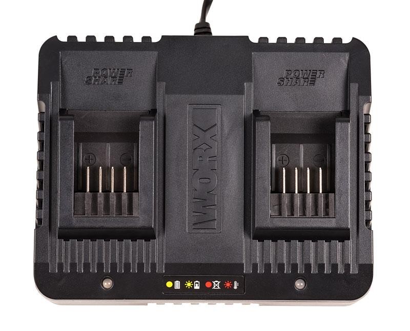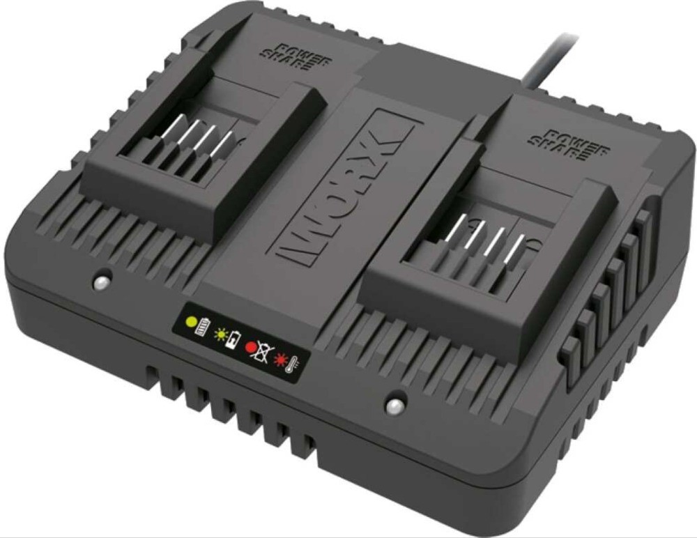 Аккумуляторная система Worx PowerShare 20 В 2 порта зарядки Компактный корпус и малый вес Светодиодная индикация процесса зарядки Функция защиты от перезаряда и перегрева |