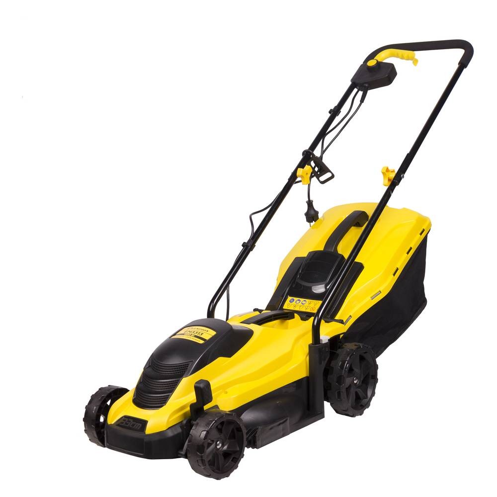 Электрическая газонокосилка Champion EM3313 с мощным двигателем 1300Вт прекрасно подходит для скашивания травы, подравнивания газонов, лужаек, для ухода за придомовыми участками. Ширина скашивания 330мм, высота скашивания варьируется от 25 до 65мм. Объём травосборника – 35 литров. Крышка травосборника оборудована ручкой для переноски. Кнопка блокировки запуска позволяет избежать случайного включения техники.