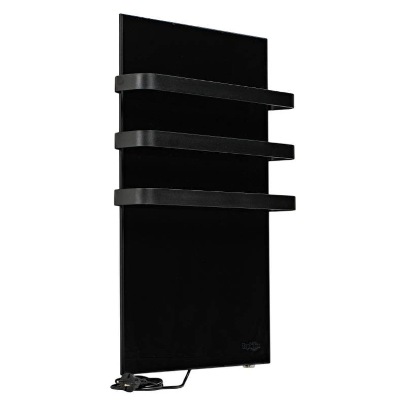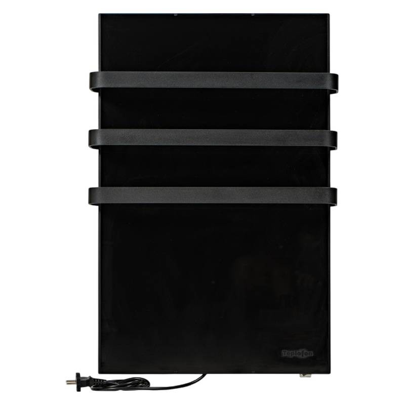 Уникальный, стильный, современный дизайн впишется в Ваш интерьер и станет незаменимой его частью. Корпус выполнен из нержавеющего металла, в который установлена греющая панель. Греющая панель – это противоударное закаленное стекло толщиной 4мм. На лицевой части размещены окрашенные полотенцедержатели из алюминиевой полосы. На корпусе полотенцесушителя установлена механическая кнопка для включения/выключения прибора и подключения к скрытой проводке.