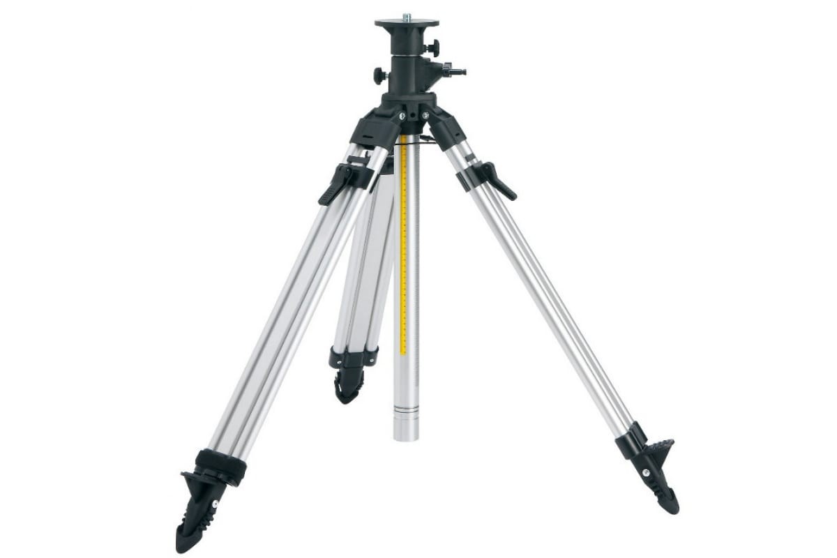 Большой рабочий диапазон Миллиметровая градуировка Фиксация стоек клипсами Встроенный пузырьковый уровень Сменные резиновые ножки Ремень для переноски |
