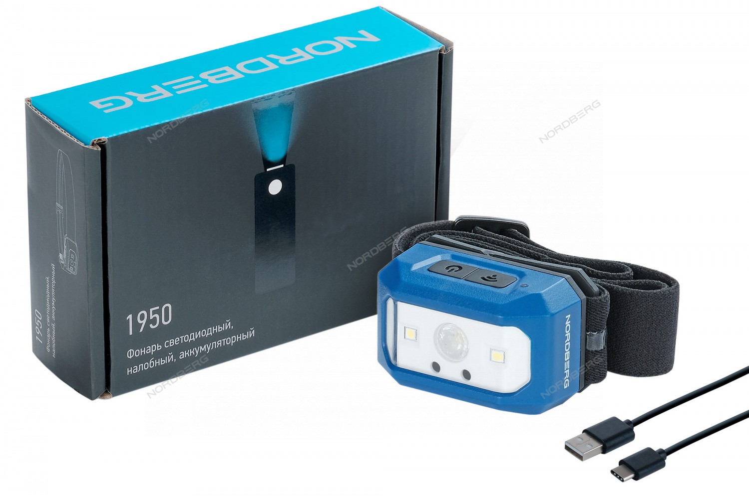 Фонарь светодиодный налобный, аккумуляторный, 3,7 В NORDBERG 1950