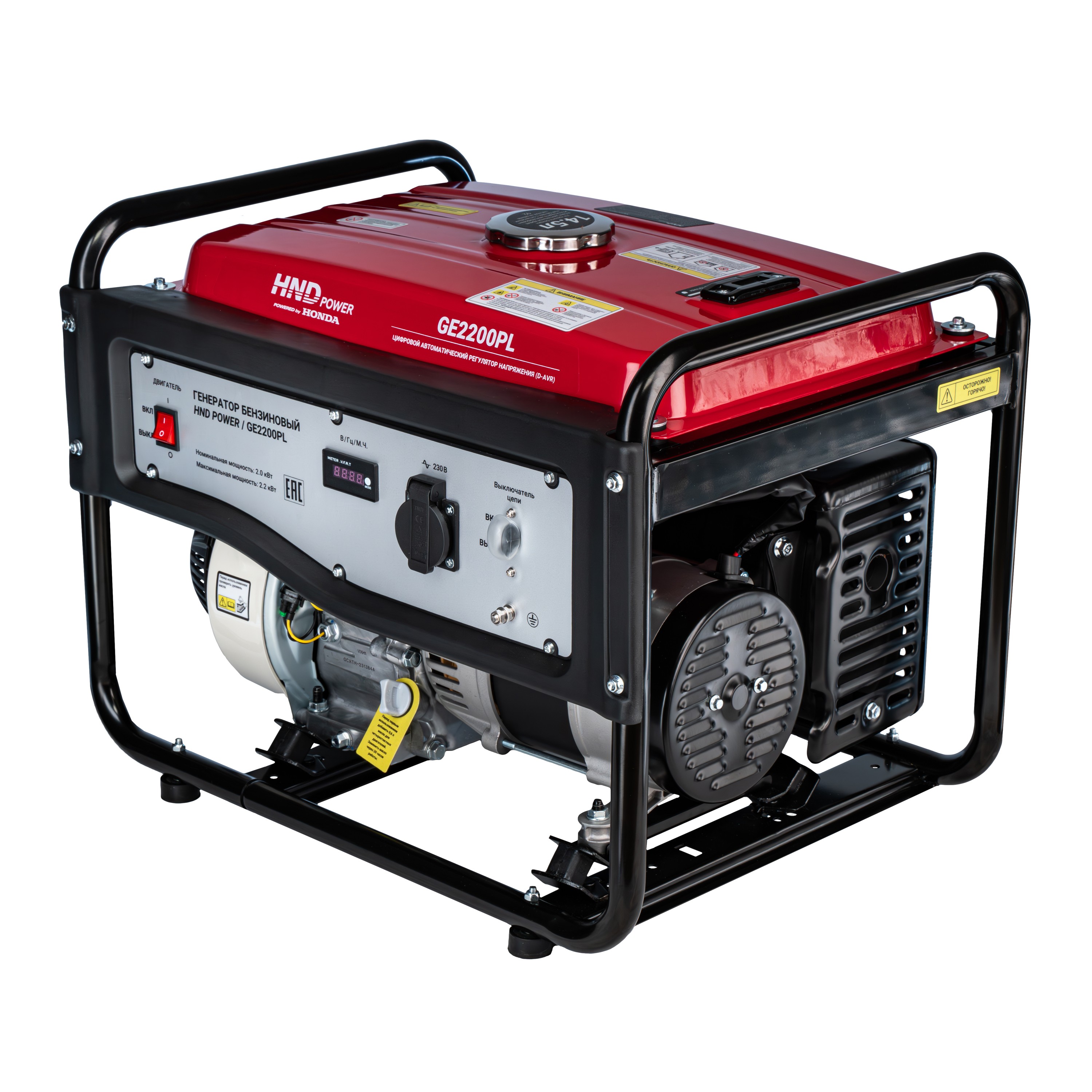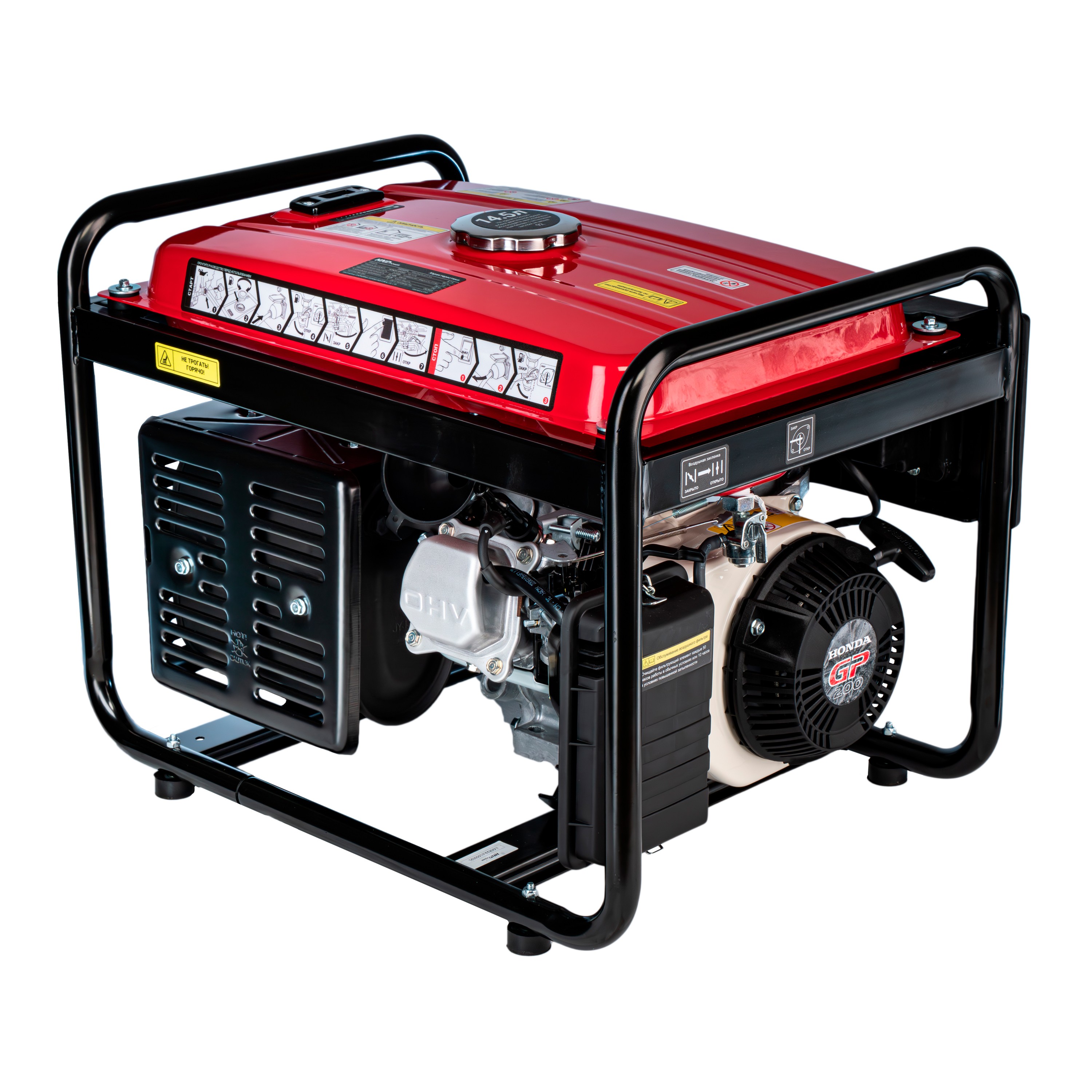 Большой топливный бак 14.5л Надежный двигатель Honda GP160 Стабильное напряжение Многофункциональный цифровой дисплей Длительное время работы до 10.4 ч Медная обмотка альтернатора |