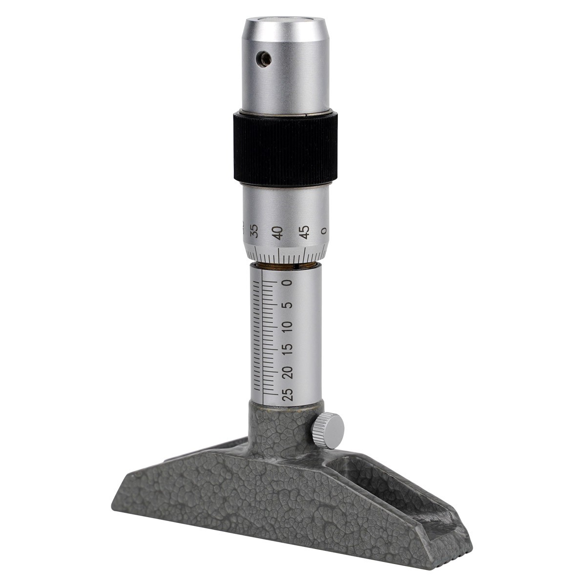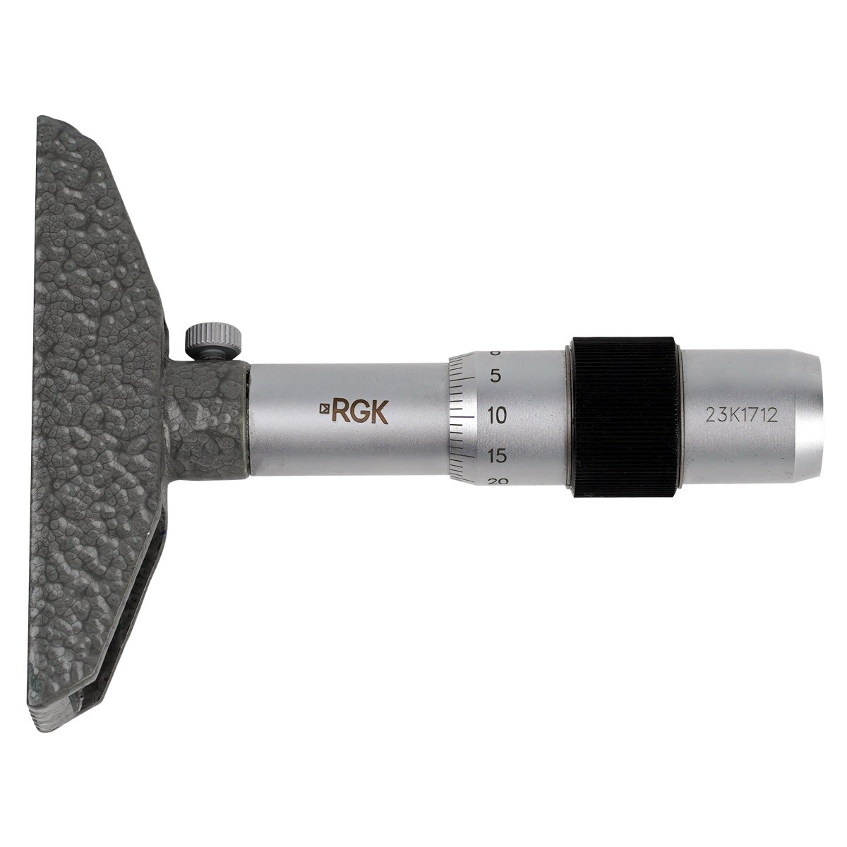 <div class="catalog-product-attributes__white-gradient"></div> Глубиномер микрометрический RGK GM-75 обеспечивает выполнение измерений в пределах от 0 до 75 мм с точностью ±5 мкм, с задействованием сменных измерительных стержней с длиной рабочей части 25, 50 и 75 мм, которые включены в комплект поставки. Представляя собой прибор механического типа, он может использоваться в промышленных условиях в разных машиностроительных отраслях для проверки геометрических параметров продукции, а также при проведении ремонтных работ с инструментальной или станочной обработкой материалов. Особенности и преимущества Конструкционно глубинометр RGK GM-75 представляет собой микрометрический узел с 25-миллиметровым вылетом, оборудованный внутренним механизмом ограничения усилия подачи выдвижного элемента, который установлен в основании с опорой шириной 85 мм, снабженном винтовым зажимом. Устройство комплектуется измерительными стержнями с упрочненной плоской опорной поверхностью диаметром 8 мм, обработанной шлифовкой, с калибров |