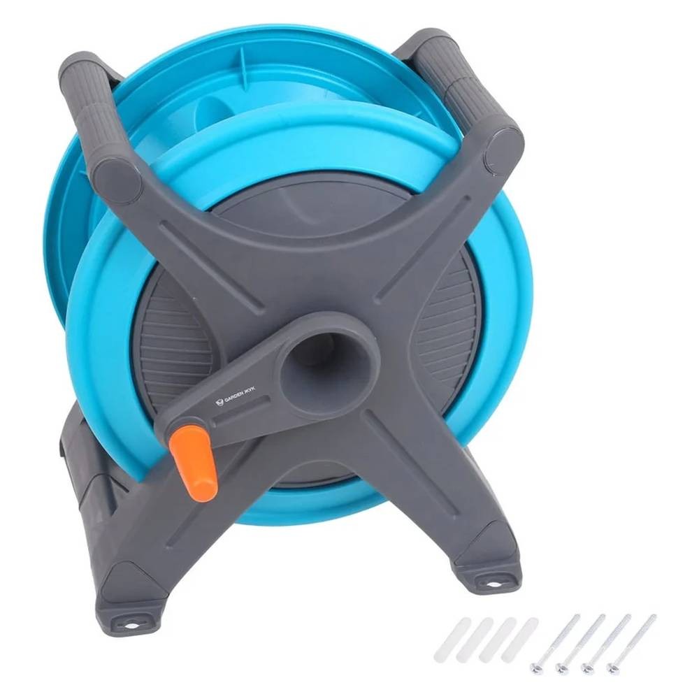 Подсоединение под углом Равномерное накручивание шланга Удобная боковая рукоятка Проушины для крепления Широкое основание Простая сборка Легкое присоединение Корпус из высокопрочного пластика Универсальность |