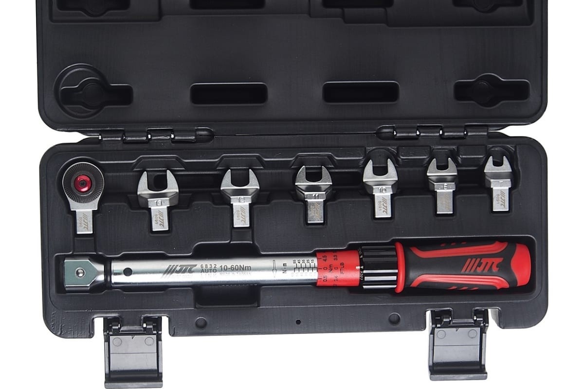 Ключ динамометрический 10-60Нм 9-12мм с рожковыми насадками 7-13мм 8 предметов JTC
