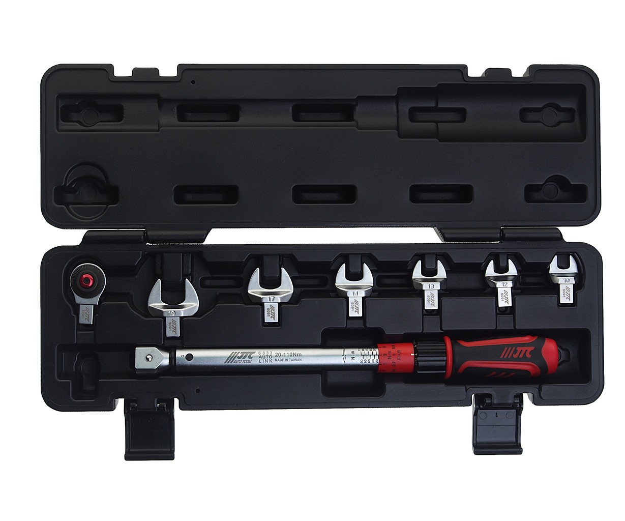 Ключ динамометрический 20-110Нм 9-12мм с рожковыми насадками 10-19мм 8 предметов JTC