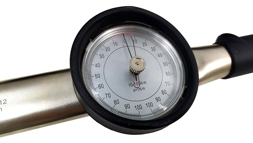 Ключ динамометрический TA-B2100-12 оснащен индикатором крутящего момента в виде циферблата с диапазоном от 0 до 100 Нм. Позволяет точно затягивать гайки или проверять уже затянутые.