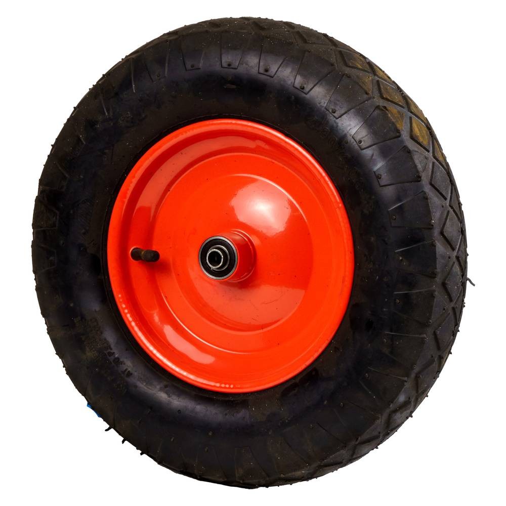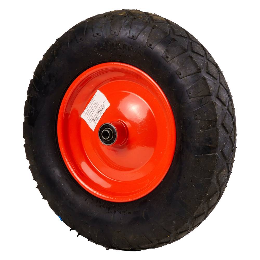 Колесо пневматическое 4.80/4.00*80 с подшипником D12 необходимо, чтобы заменить старое колесо на строительной тачке или садовой тележке. Высококачественный стальной диск покрыт краской, которая хорошо защищает поверхность колеса от коррозии. Подходит для строительной тачки REDVERG RD-WB120/. Посадка 12 мм, диаметр колеса 400 мм.