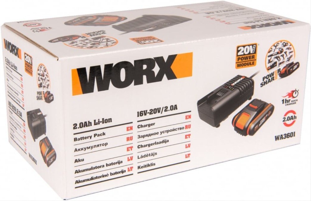 Комплект 3601 WORX: 1 аккумулятор 2 Ач и зарядное устройство на 2А