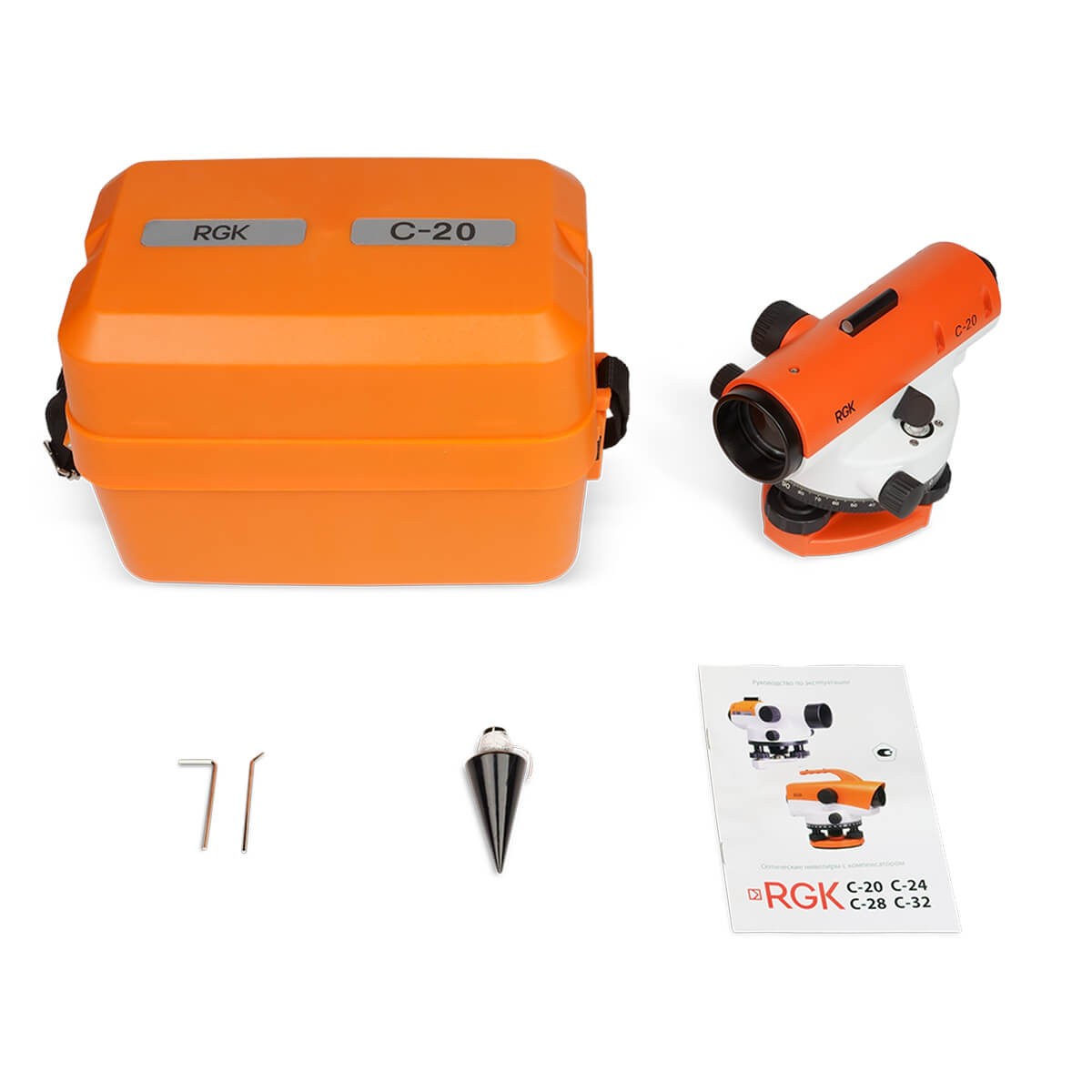Комплект оптический нивелир RGK C-20 с поверкой + штатив S6-N + рейка AMO S5