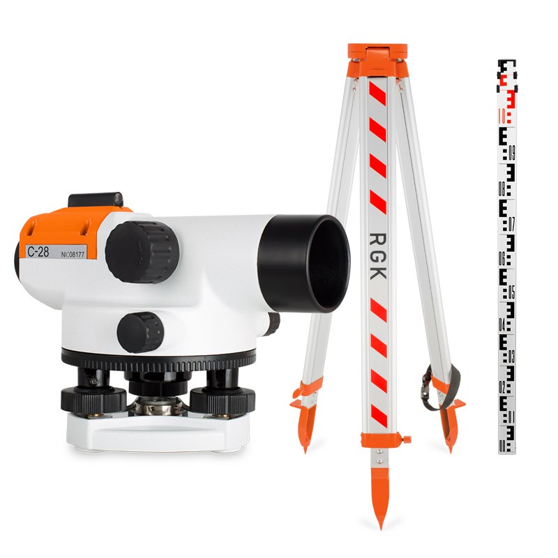 Комплект оптический нивелир RGK C-28 с поверкой + штатив S6-N + рейка AMO S3