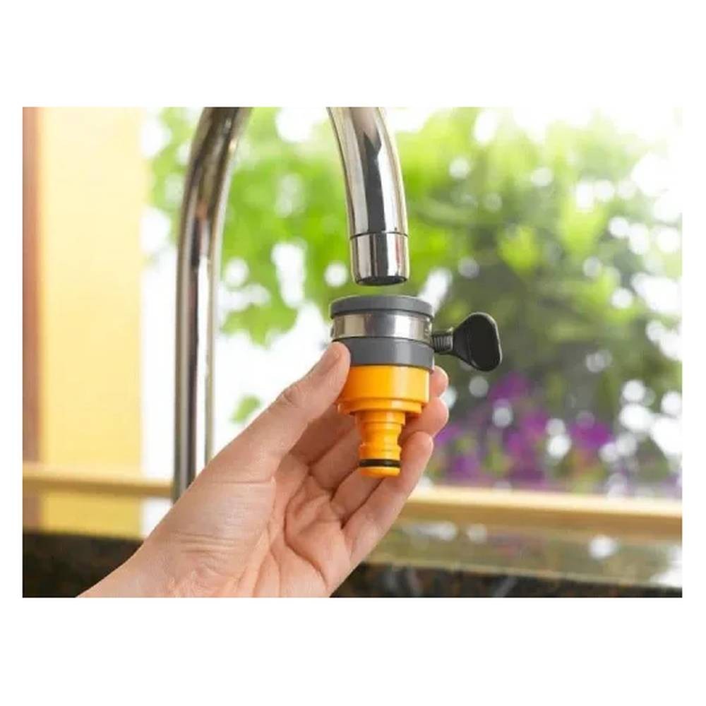 Коннектор Hozelock для крана-смесителя 1" круглого сечения (до 24мм) предназначен для кранов без резьбы круглого или овального сечения максимального диаметра 24 мм. Коннектор фиксируется на кране при помощи хомута из нержавеющей стали, который плотно затягивает резиновую часть коннектора вокруг крана, обеспечивая соединение без протечек.