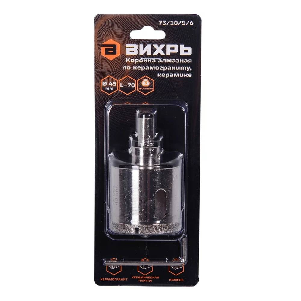 Коронка алмазная Вихрь по керамограниту/керамике, 45 мм