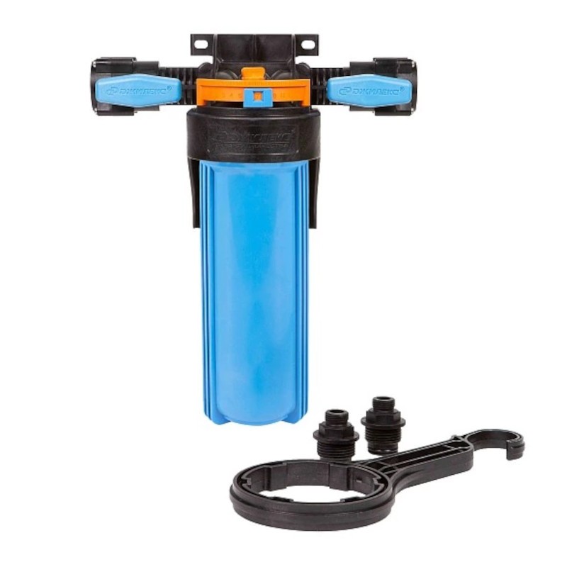 Корпус для картриджного фильтра Джилекс 1 М Т предназначен для размещения в нём картриджей или фильтрующей засыпки для дальнейшей очистки холодной воды в бытовых условиях. Типоразмер колбы - SlimLine 10”. Поворот коллектора на 180° позволяет установить корпус фильтра в магистраль, с направлением движения воды, как слева направо, так и справа налево. Магистральную трубу можно разместить вплотную к стене. Кронштейн является одним целым с крышкой корпуса фильтра. В корпусе предусмотрены специальные технологические отверстия (пробки) для сброса избыточного давления и слива остаточной воды. В комплект поставки входит ключ, с помощью которого можно отвернуть колбу от крышки, а также уплотнительная вставка белого цвета для картриджных элементов без сердечника. На концах коллектора встроены шаровые краны.