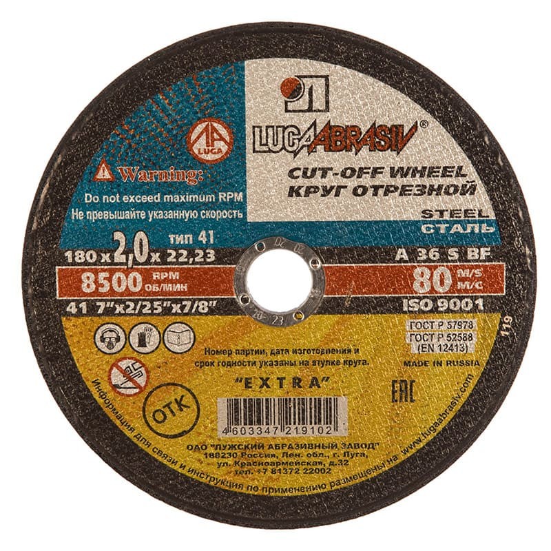 Круг отрезной по металлу Луга 180х2х22.2мм