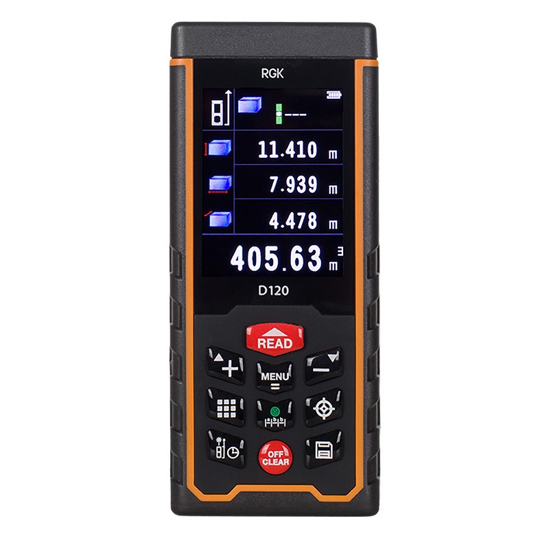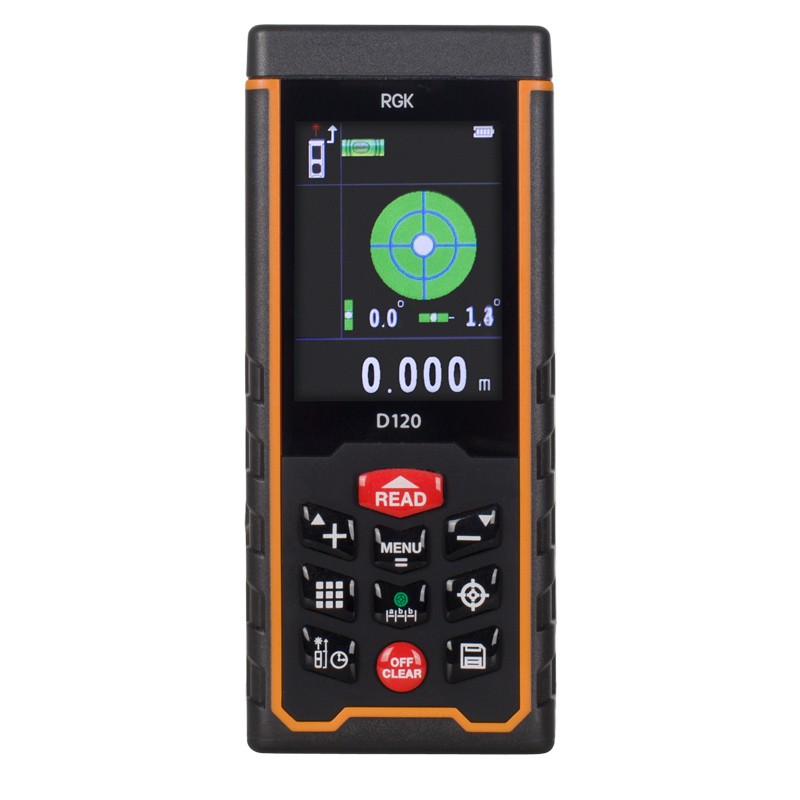 <div class="catalog-product-attributes__white-gradient"></div> Лазерный дальномер RGK D120 — измерительный прибор с цифровым видоискателем для определения расстояний до 120 метров в помещениях и на улице. Обладает широким функционалом и возможностью подключаться напрямую к коммуникатору или ПК. К данному прибору подходят элементы питания 1,5В, тип ААА (3 шт). |