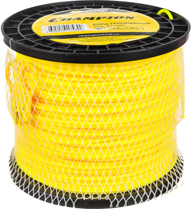 Леска для триммера Champion Star 3.0мм*164м (звезда) - режущий элемент для косильных головок триммеров. Имеет отличную режущую способность благодаря острым краям. Благодаря такому сечению корда снижается уровень шума прим стрижке травы. Оптимален для регулярного скашивания травы. Имеет широкий период эксплуатации даже в условиях интенсивных нагрузок.