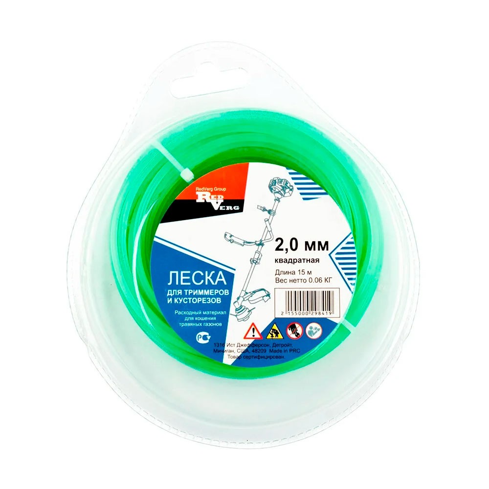 Леска для триммера REDVERG 2мм квадратная витая армированная 15м (990441)