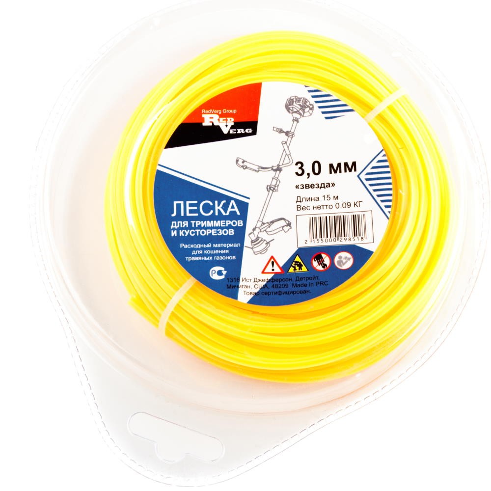 Леска для триммера REDVERG д 3мм (15м) квадратная зубчатая