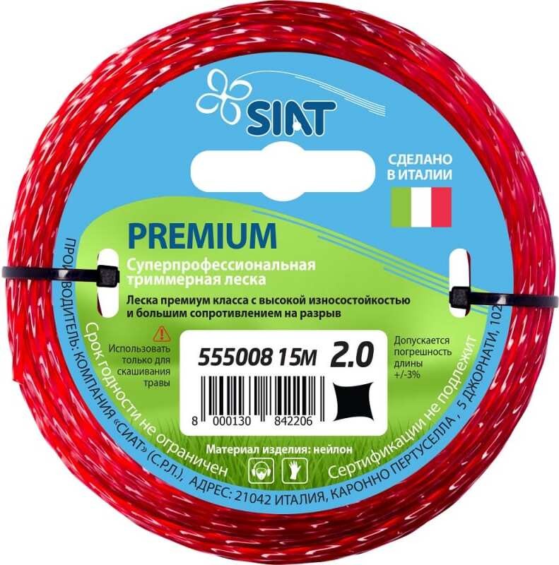 Леска для триммера SIAT Premium 2 мм/15м, крученый квадрат