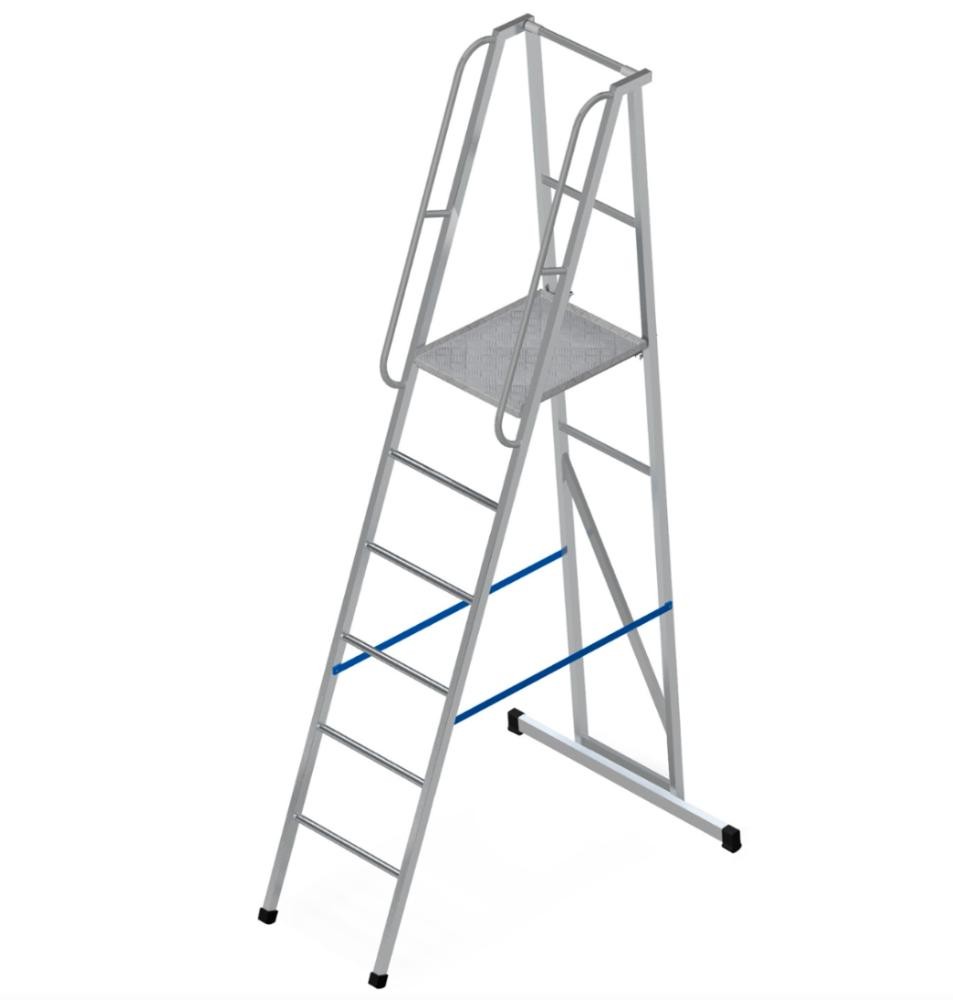 Лестница-платформа фиксированной высоты алюминиевая MEGAL ЛПФВА Н=1.5-4 с траверсой