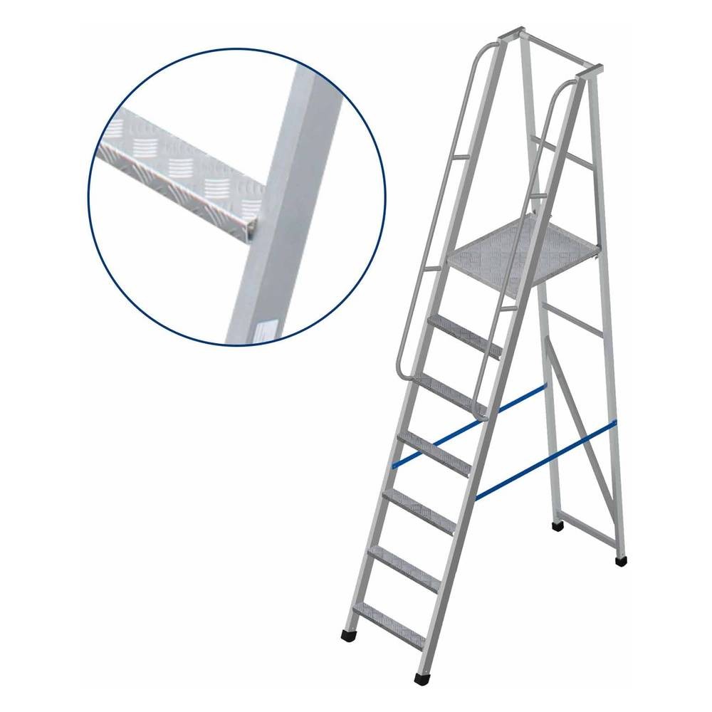 Лестница-платформа фиксированной высоты алюминиевая MEGAL ЛПФВА Н=2.0-6 с широкими ступенями