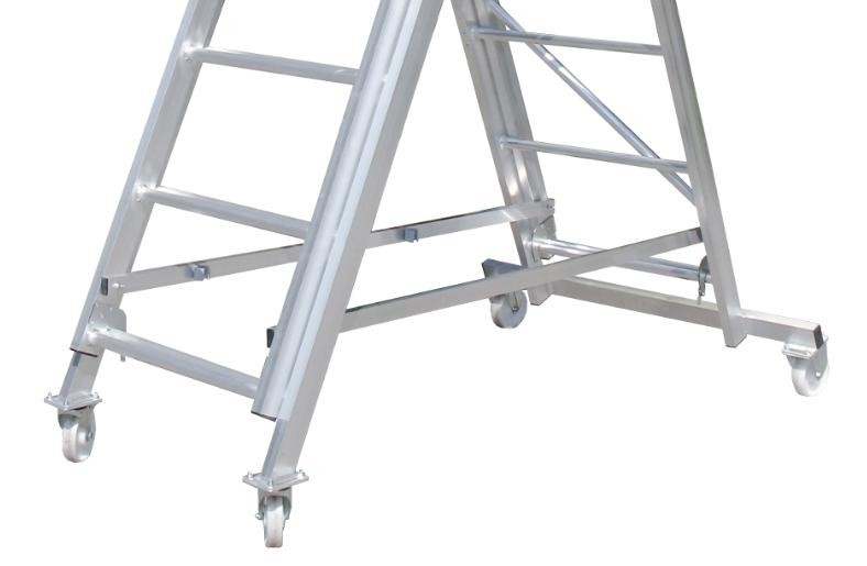 Легкий вес Максимальная нагрузка 150кг Большой диапазон рабочих высот Ступени из рифленой трубы Складная конструкция Мобильность |